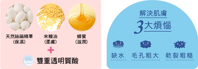 - 揉合皇牌保濕成分「天然絲繭精華」及「雙重透明質酸」